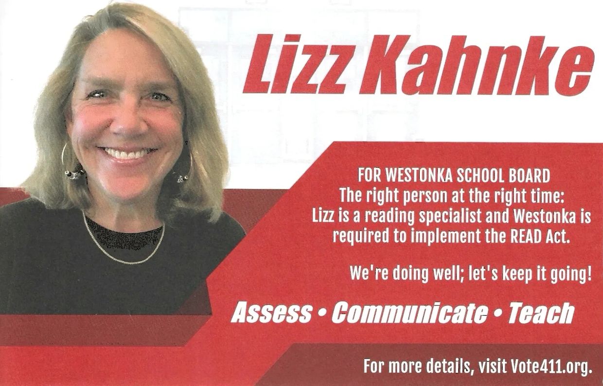 I am running for school board because I am the right person at the right time. I am a reading specialist and Westonka is implementing the READ Act. I have worked extensively with students from the district, and am in a unique position to provide input on their needs and concerns. I am passionate about literacy and getting all our students reading at grade level. Our schools are highly ranked for reading and math, but there is more to be done (currently 77% of students are proficient at grade level). It is imperative we teach our students to read, write, and think to the best of their abilities.